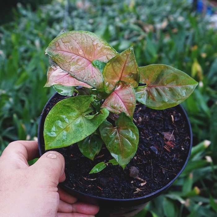 Syngonium podophyllum 'Maria Allusion' adalah varietas yang menarik dengan daunbaru berwarna hijau, dan daun dewasa yang tampak merah muda. Syngoniumpodophyllum adalah spesies tanaman yang sangat populer dan mudah dirawat.Tanaman hias ‘mini’ yang cantik untuk menambah koleksi tanaman hias ataupunsebagai pengisi ruang di meja (desk plant). Perawatan : mudahFungsi: tanaman pot, tanaman indoor, Tanaman meja, TerrariumUkuran : Pot 12 cm PROSES PENGIRIMAN1. Tanaman yang kami kirim, diseleksi dan di treatment terlebih dahulu, dengankondisi yang baik dan layak kirim.2. Tanaman yang kami jual merupakan bibit yang dirawat dari nursery sendiri.dikirim dalam keadaan berbunga / tidak (menyesuaikan kondisi / musim)3. Packing tanaman disesuaikan dengan jenis tanaman, sehingga aman dan terjagakualitasnya.4. Untui pengiriman via JNE/JNT/Tiki dan sejenisnya, media tanaman (tanah/sekam)akan kami kurangi untuk mengurangi berat. Namun tetap aman sampai ditujuan.5. Untuk mengurangi resiko tanaman rusak serta hasil yang maksimal, kamisarankan menggunakan instant kurir / Sameday / pengiriman cepat atau exp