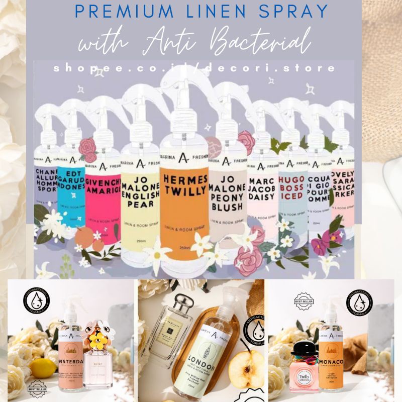 Terlaris Perlengkapan di Kabupaten Kutai Kartanegara Aquarina Linen Spray Room Fabric Freshener Anti Bacterial Premium Pewangi Pakaian Parfum Ruangan dari Decori Store Kota Tangerang