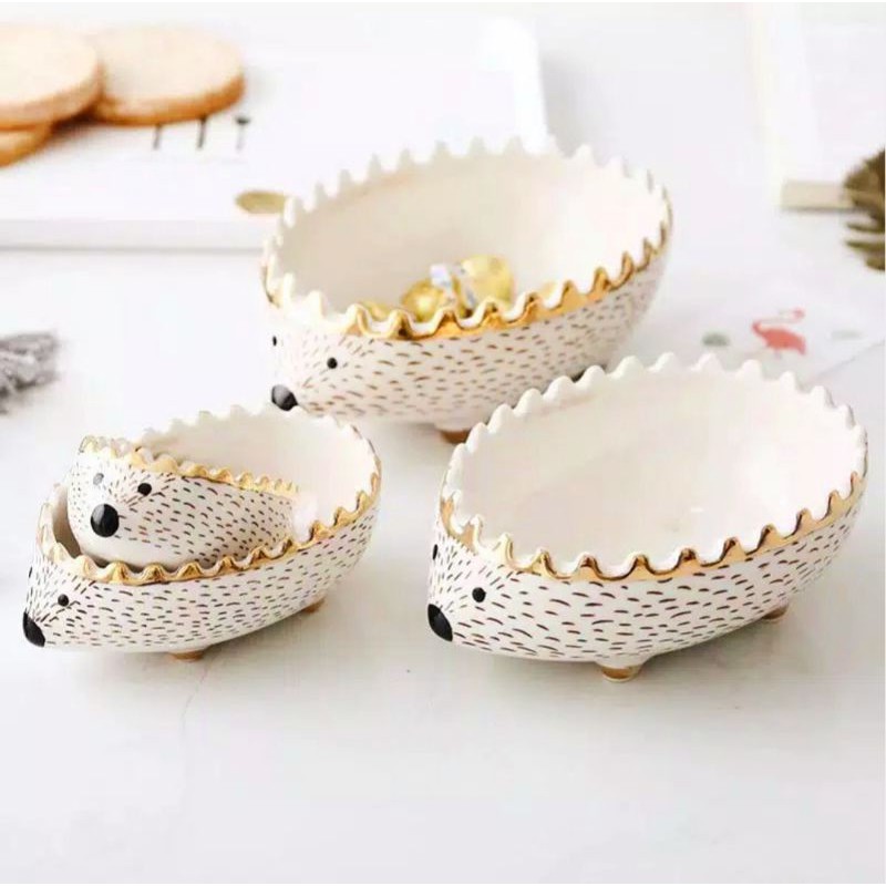Mangkok keramik bentuk Landak Color: milky white with gold rimSet of 4 : detail ukuran ada d slide terakhirHarga d atas dpt 4 pcs, ukuran mini, small, med and largeCocok buat kado jg and buat yg mau ngasih ucapan, kita bisa print and taruh dlm box sblm dipacking ya Untuk pengiriman, semua barang akan dibubble wrap tebal dalam n luar box (free dr kita, ga perlu nambah bayar) jadi aman sampe tujuan For more info on our new products, please follow our ig : @livinginsty