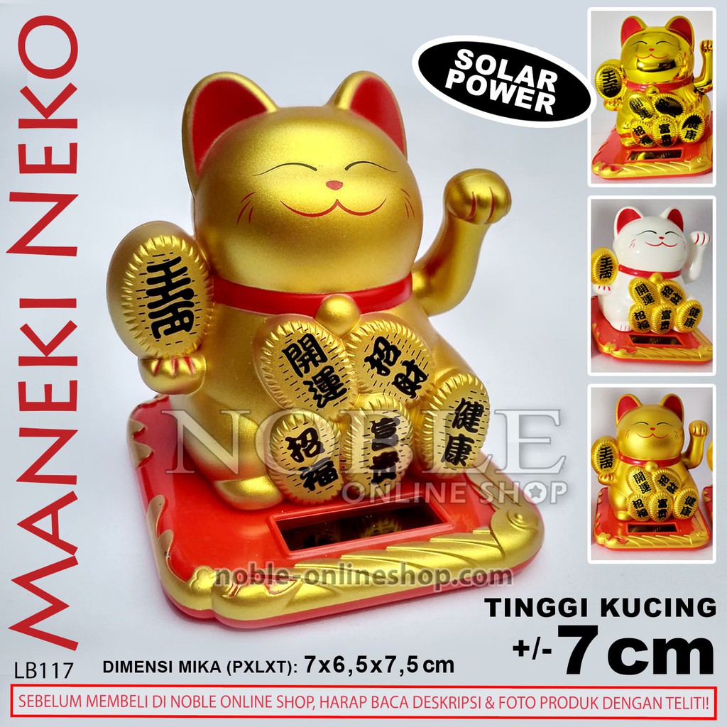 Kucing ini di kenal dengan nama Maneki Neko dalam bahasa Jepang, yang artinya kucing pengundang. Boneka kucing dianggap membawa keberuntungan karena gerakan tangannya seolah mengundang keberuntungan untuk pemiliknya. Meski begitu, tidak ada salahnya menjadikan boneka kucing ini jadi pilihan koleksi kamu.Pilihan Warna: Gold Glossy, Gold Doff, dan WhiteBahan: PlastikDimensi mika: Panjang (7cm) x Lebar (6,5cm) x Tinggi (7,5 cm)Tinggi kucing +/- 7 cmTenaga: Solar, tidak perlu baterai. Tangan dapat bergerak melambai dengan menggunakan tenaga matahari atau dengan cahaya lampu.Berat produk 65 grSetiap barang yang dikirim, sudah melalui proses cheking untuk memastikan kondisi baik dan packing aman.MOHON BACA DULU. BILA SUDAH ORDER, BERARTI MENGERTI & SETUJU KETENTUAN INI:1. Sebelum klik "BELI", diharap perhatikan dulu baik-baik harga, gambar dan deskripsinya, supaya tidak ada kesalahpahaman setelah Anda menerima produk tersebut.2. Bertanyalah bila ada yang kurang jelas melalui "Chat". 3. Isi alamat kirim & no telp dengan lengkap & benar, agar pengiriman lancar sampai tujuan. Kami tidak bertanggung jawab jika ada kesalahan penulisan alamat. Keterlambatan/kendala pengiriman dari pihak ekspedisi di luar jangkauan kami. Kami akan kirim pesanan Anda dengan segera agar barang cepat sampai ke tangan Anda.4. Cantumkan keterangan apabila mungkin rumah kosong saat kurir tiba untuk menitipkan tetangga/security atau utk lokasi kantor, cantumkan jam buka/tutup kantor, agar pengiriman lancar sehingga tidak perlu dijadwal ulang menunggu pengiriman di hari berikutnya.5. Pilihlah servis kurir sesuai kebutuhan. Perkiraan paket sampai tujuan terhitung dari tgl paket dikirim dan sampainya tergantung servis yg dipilih dan tergantung jaraknya. JNE Reguler (+/- 3 s/d 5 hari), JNE OKE (+/- 5 hari s/d seminggu).6. PESANAN TIDAK DAPAT DIBATALKAN/DIKEMBALIKAN/DITUKAR.Kami berusaha untuk menyeleksi dan memeriksa setiap barang yang akan dikirim. Barang akan dikemas agar tetap aman sampai tujuan. Walaupun ada produk yang tidak mempunyai kemasan produk, kami tetap akan mengemasnya dengan dus sembarang saat pengiriman. Bila ada dus/box produknya, maka kami akan foto bersama dus/box produknya.7. Kualitas produknya sesuai dengan harga, sesuai foto yang ditampilkan, agar pembeli tidak kecewa dan benar-benar mengenal produk yang dibelinya.8. Foto original dari NOBLE Online Shop, langsung diambil dari produk yang kami jual (REAL PICTURE). Foto mengandung hak cipta! Dilarang menggunakannya! TERBUKA UTK DROPSHIPPER tetapi karena sistemnya tidak terikat, jadi dropshipper harap gunakanlah foto produk serupa yang tanpa trademark.9. Diharapkan niat baik kami menyajikan gambar dan deskripsi yang jelas dinilai dengan rating bintang yang sesuai. Jadi Kami mengucapkan banyak terima kasih kepada Anda yang sudah meluangkan waktu untuk memberikan review/ulasan dan rating bintang. Kami nantikan kunjungan Anda kembali :)10. Komunikasi dan transaksi hanya melalui Sh