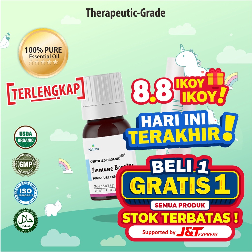 Shopee 8.8 Ikoy IkoyHARI INI TERAKHIRBELI 1 GRATIS 1 Semua Produk( u/ Produk yang Bertanda Khusus B1G1 )Stock Sangat Terbatas~===================Lindungi diri & Keluarga dari serangan Virus & Bakteri==========================Natuna Immune Booster Essential Oil & Balsem Stick SALLY==========================Size: 10mlCode: N110097Type: Essential Oil BlendGrade: Therapeutic-grade============================= MANFAAT IMMUNE BOOSTER ESSENTIAL OIL================== Meningkatkan Kekebalan Tubuh ( Immune ) Meningkatkan Daya Tahan Tubuh agar si Kecil dan Bunda tidak gampang sakit oleh Virus & Bakteri Dapat digunakan sebagai Anti Virus & Anti Infeksi yang efektif.Beberapa Tips Cara Pemakaian : Diteteskan 2-10 tetes pada Diffuser sebagai Terapi u/ memberikan efek rileksasi & mendapatkan manfaat dari Essential Oil. Dicampur dgn Natuna Carrier Oil, Oleskan pada leher & pijat u/ manfaat ketika diluar rumah atau ruangan. Diteteskan Random / Acak disudut2 rumah / apartmen untuk menghilangkan bau tak sedap secara instant.===============Natuna Essential adalah Brand Lokal u/ Essential Oil dgn Standard International ( ISO ) & Therapeutic Grade dgn Variant Essential oil TERLENGKAP di indonesia.*FREE BUBBLE WRAP, BOX AND LOVE DARI NATUNA ESSENTIAL Lᵒᵛᵉᵧₒᵤ♥#EssentialOil#Aromatherapy #Therapeuticgrade#ImmuneBooster#EssentialOil