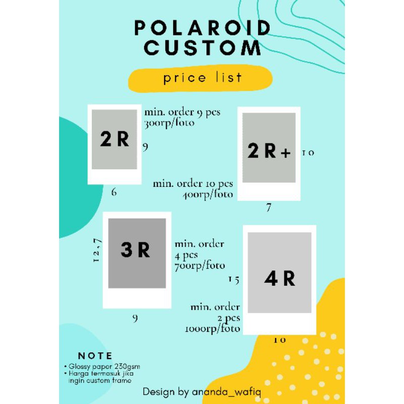 Name: (2r, 2r+, 3r, 4r) Polaroid Custom / Polaroid Kpop / Photocard Custom Kertas Glossy 230 Gsm