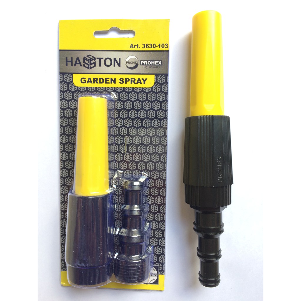 Semprotan air PVC hasston Prohex untuk dipasang di ujung selang Pengaturan on/off tinggal diputar ujung semprotanPengaturan kencang/mekar air juga tinggal diputarujung semprotannyaNB : Tolong tanyakan ketersediaan stok sel