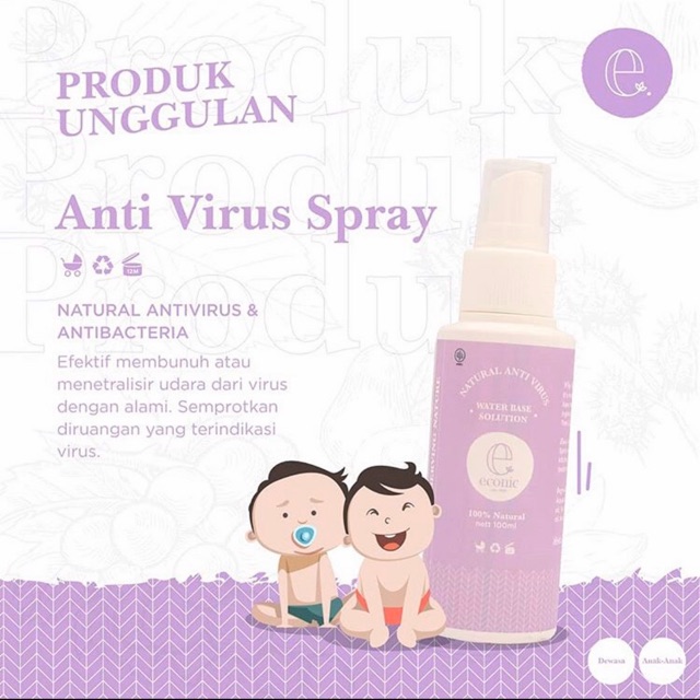 Econic - Natural Anti VirusPrice: Rp. 80.000, Size: 100mlRefill: Rp. 380.000, Size: 500mlRp. 720.000, Size: 1000mlExp. Date: May 2022Econic Natural Anti Virus adalah disinfektan alami non alcohol dan zat kimia yang terbuat dari essential oil seperti Tea Tree oil dan Eucalyptus oil. Efektik sebagai air disinfectant, membunuh virus dan bakteri.Cara penggunaan sangat mudah, cukup semprotkan secara merata di ruangan, mobil, toilet umum, kamar tidur, handphone dan barang lainnya.Aman untuk bayi dan dewasa.Aman untuk kulit sehingga dapat digunakan sebagai hand sanitizer.Aman untuk mensterilkan mainan anak.Klik link berikut untuk Refill 500ml:https://shopee.co.id/product/11312224/5928830573?smtt=0.0.9Klik link berikut untuk Refill 1000ml:https://shopee.co.id/product/11312224/6428831183?smtt=