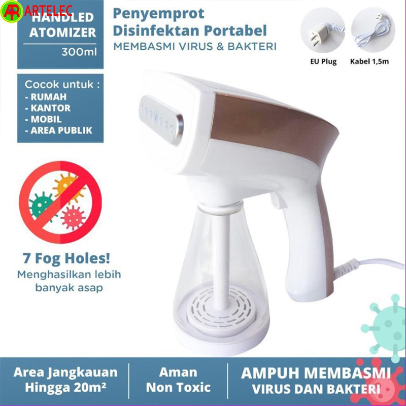 Disinfectant Nano Fogger Steam Gun | Nano Spray Gundisinfection nano spray steam gun1. 360 ° disinfection and complete sterilization,Atomized disinfection with nanos sterilization deodorant.the high temperature of 170 ° C-180 ° C makes the photocatalyst disinfectant liquid form a smoke,which diffuses inside the car to realize the disinfection and purification of the whole car2. Photocatalyst nanos atomization disinfection machine,When the red light turns green, press the bottom spray button, push up to release and push down to fix the continuous spray 100ML atomization time is about 8 minutes3. After inserting the power cord plug of this product into the rated socket, press the switch key and wait for 3 seconds to turn on After waiting for the machine to warm up for 40 seconds, when the green indicator light is on,the spray guns can start Eject nanos steam4. Add 100ml disinfectant, do not add corrosive disinfectantdisinfection is completed in about 10 minutes, please turn off the switch immediately after using the liquid to avoid Long-term dry burning of the heater damages the machine. Use a dry towel to wipe off the residual moisture of the atomization to complete the disinfection operationSpesifikasi :Power : 1200 WVoltage : 220 VOLTBerat : 1.3 KGWater Bottle Capacity : 260MLPower Cord Length : 2.5 METERNano Steam Gas Production : 22ML/MIN(Super Nano kecil sehingga ga buat pakaian Basah Demek)Cocok untuk :- Rumah , Kantor , Mobil , area PublikAmpuh membasmi Virus dan Bakteri, Aman, Non ToxicArea Jangkauan Hingga 20m2Bisa diisi semua cairan : cairan disifectan, alcohol campur air juga bisa.Semua barang yang kami kirim dijamin BARUdan sebelum dikirim barang selalu kami TEST terlebih dahulu.ANDA PUAS KAMI SENANGTerima kasih,ARTelec#DisinfectantNanoFogger #NanoSpraygun #nanostea