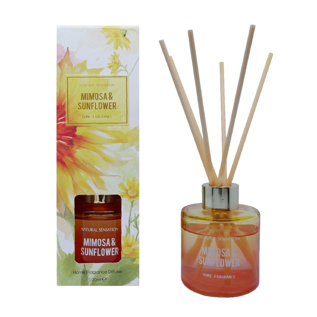 Diffuser dengan aroma mewah lengkap dengan Tongkat Reed Rotan, Minyak Esensial yang wangi, botol kaca dan kotak produk yang cantik.Pengharum Udara cocok digunakan disegala ruanganBrand: OKIDOKIMaterials: solvent, fragrance, additive, with 12% premium fragranceProduct Size: 100 MLvarian: Mimosa & Sunf