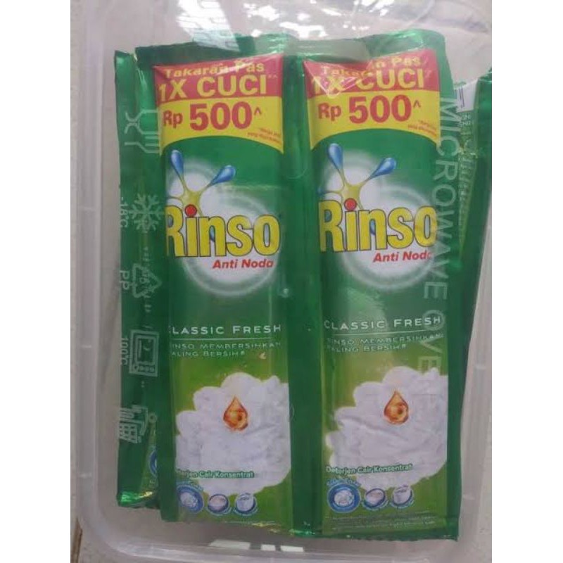 Harga diatas 450 / pcs Nama produk : rinso cair sachet Berat/netto : 21mlVarian : classic freshInfo tambahan :PENTING :✅ Ketersediaan barang dapat berubah sewaktu-waktu✅ Silahkan chat penjual terlebih dahulu untuk memastikan ketersediaan barang yg ingin dipesan atau barang akan dikirim random. ✅ Tidak menerima komplain barang RUSAK tanpa VIDEO unboxing paket.✅ MEMBELI = SETUJUTerimakasih dan slamat berbelanj