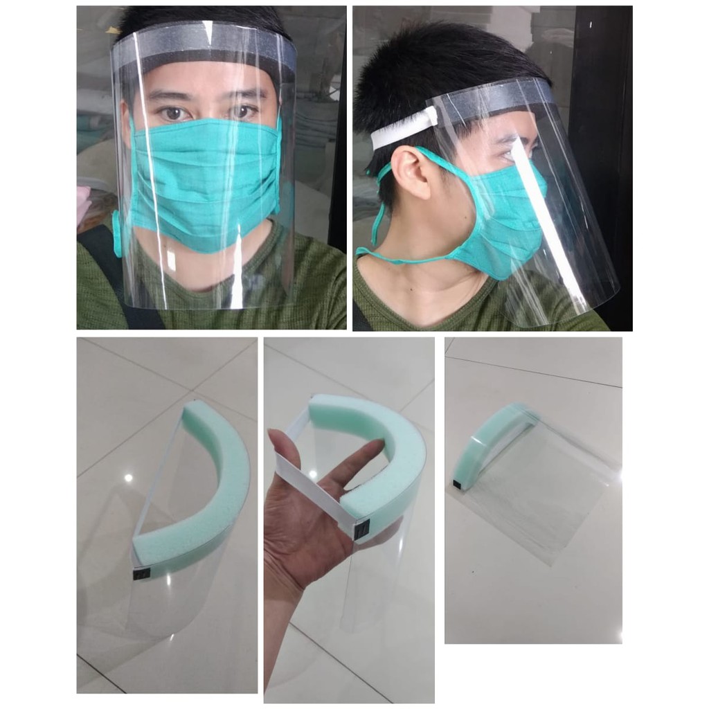Face Shield atau Pelindung Wajah (Anti Droplet)Bahan Produk :- Busa PU- Mika PVC (Keras / Tebal)- Tali KaretUkuran Face Shield 30 x