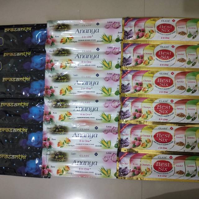 Dupa renteng dengan aroma mix dalam satu kemasanPer sachet isi 35 stikAda 6 aroma dlm satu kemasanJenis dupa bisa dicampur dlm satu or