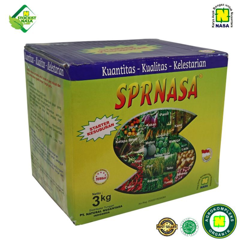 SUPERNASA BESAR 3KG PUPUK ORGANIK PADATPupuk Organik Padat (POP) SUPERNASA, Merupakan Pengembangan dari Pupuk Organik Cair Nasa. Formula khusus murni bahan-bahan organik untuk pupuk dasar/penyiraman tanaman.FUNGSI UTAMA:(1). Mengurangi pupuk NPK (50% dari dosis rekomendasi setempat) sehingga terjadi keseimbangan antara penggunaan pupuk kimia dan organik.(2). Memperbaiki lahan-lahan yg rusak, sebab Super Nasa memiliki kandungan Humat dan Fulvat yg berangsur-angsur akan memperbaiki konsistensi (kegemburan) tanah yg keras membantu perkembangan mikro-organisme tanah yg bermanfaat bagi tanaman sepetri cacing, mikroba alami setempat, dll.(3). Dapat digunakan utk semua jenis tanaman pangan (Padi, Palawija, dll), Horti (sayuran, buah, bunga) dan tahunan (coklat, kelapa sawit, karet, dll). Super Nasa mengandung lengkap unsur hara/nutrisi makro dan mikro bagi tanaman.(4). Kandungan Hormon/Zat Pengatur Tumbuh (Auxin, Giberelin dan Sitokinin) akan mempercepat perkecambahan biji, pertumbuhan akar, fase vegetatif/pertumbuhan tanaman serta memperbanyak dan mengurangi kerontokan bunga dan buah.(5). Memacu perbanyakan pembentukan senyawa polyfenol untuk meningkatkan daya tahan tanaman terhadap serangan peyak