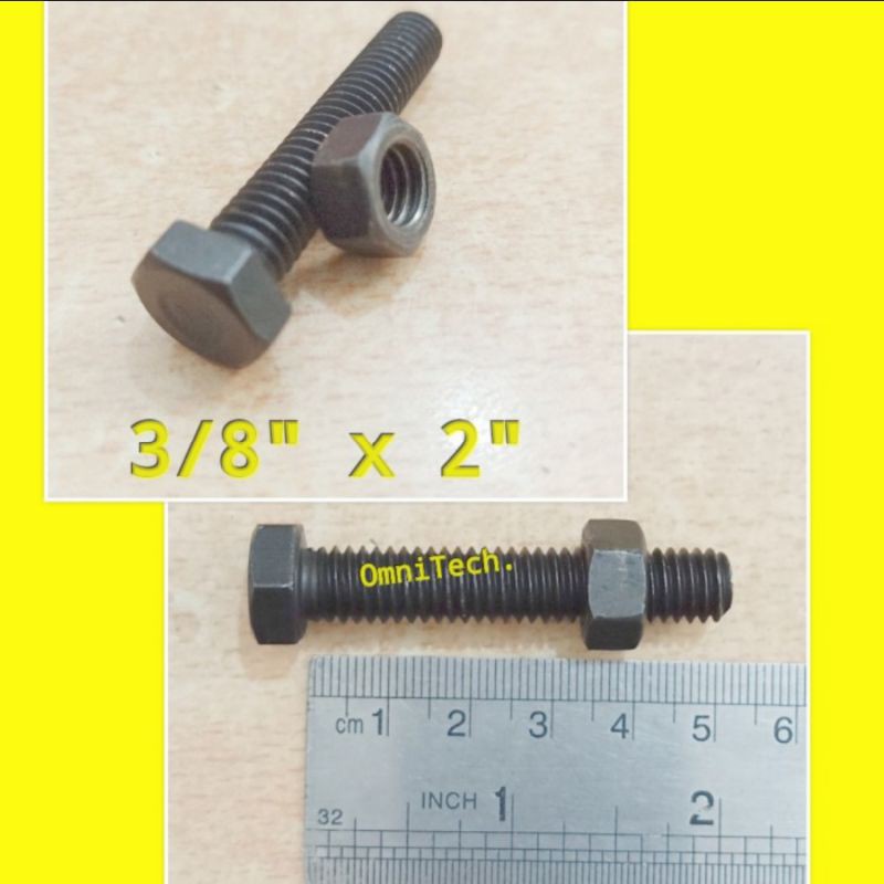 Name: Baut Mur Hex Hexagon Besi Hitam 3/8" X 2" Kunci 14 Drat Kasar 3/8"x2"